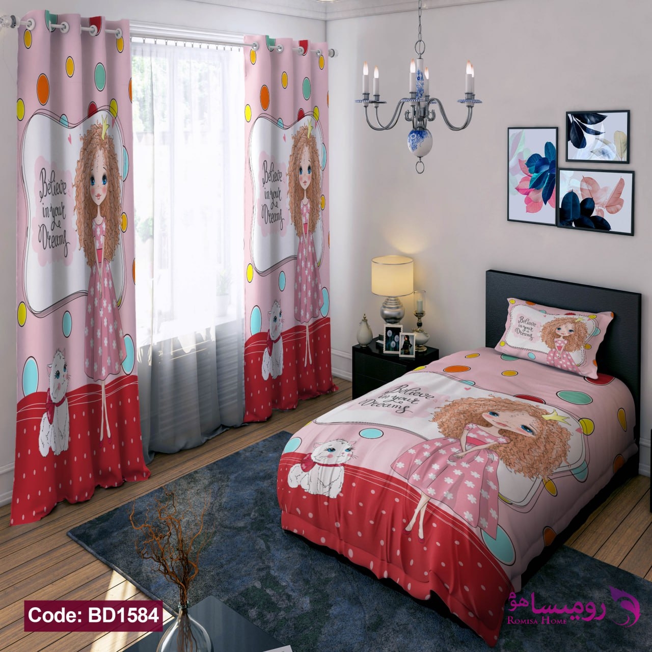 روتختی طرح دختر فرفری در چهار تکه تولید می شود که شامل یک عدد لحاف، دو عدد روبالشتی و یک عدد ملحفه روی تشکی می باشد که ابعاد آن با توجه به سایز تخت شما مشخص می شود.