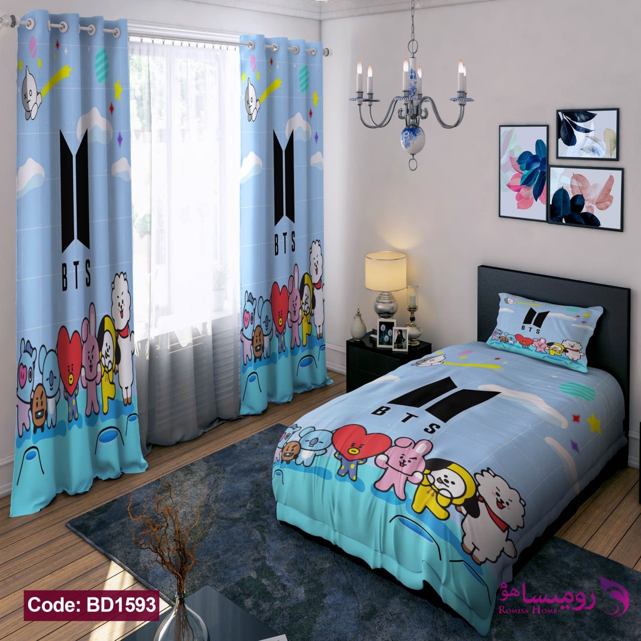 روتختی طرح BTS در چهار تکه تولید می شود که شامل یک عدد لحاف، دو عدد روبالشتی و یک عدد ملحفه روی تشکی می باشد که ابعاد آن با توجه به سایز تخت شما مشخص می شود.